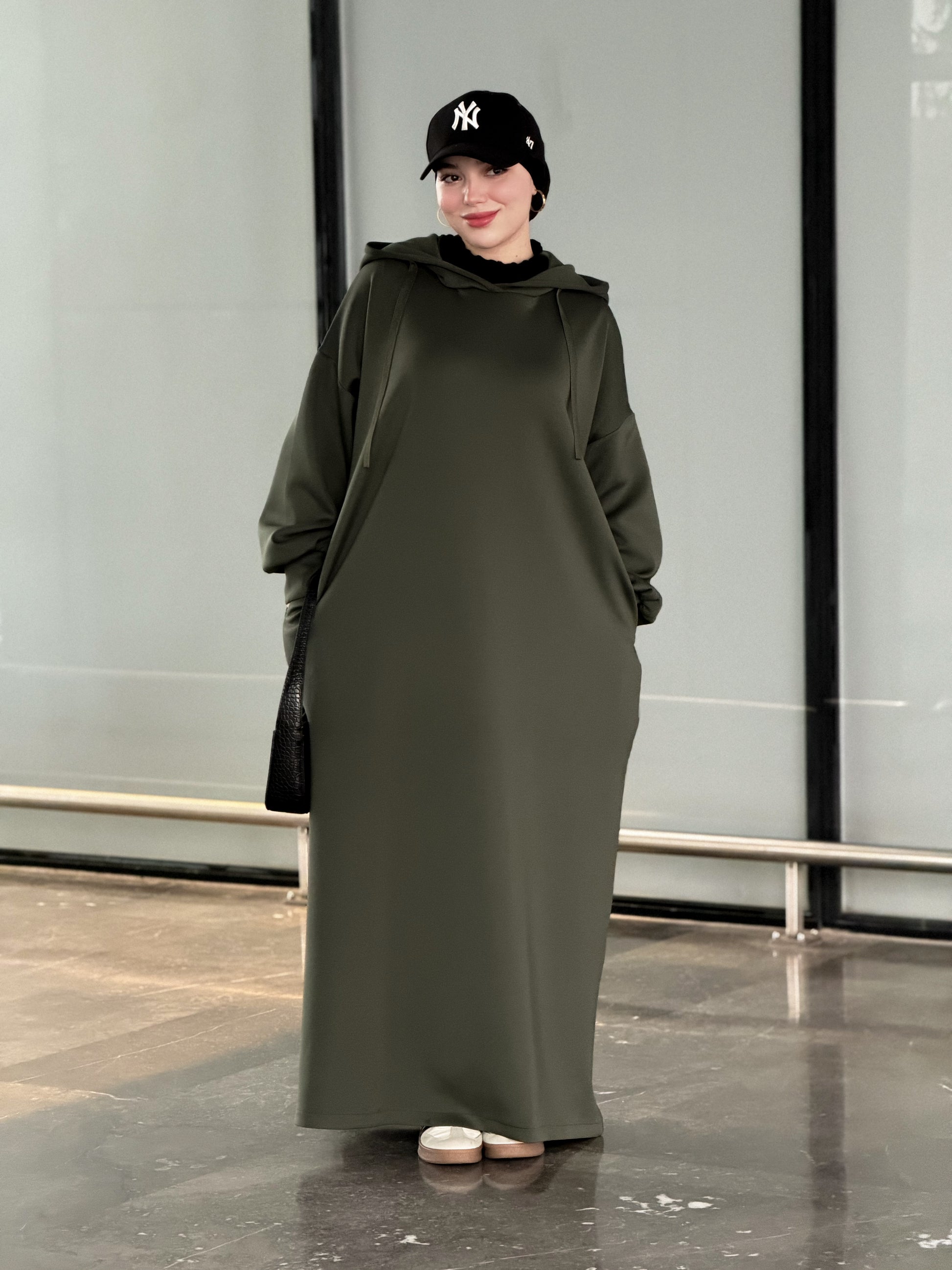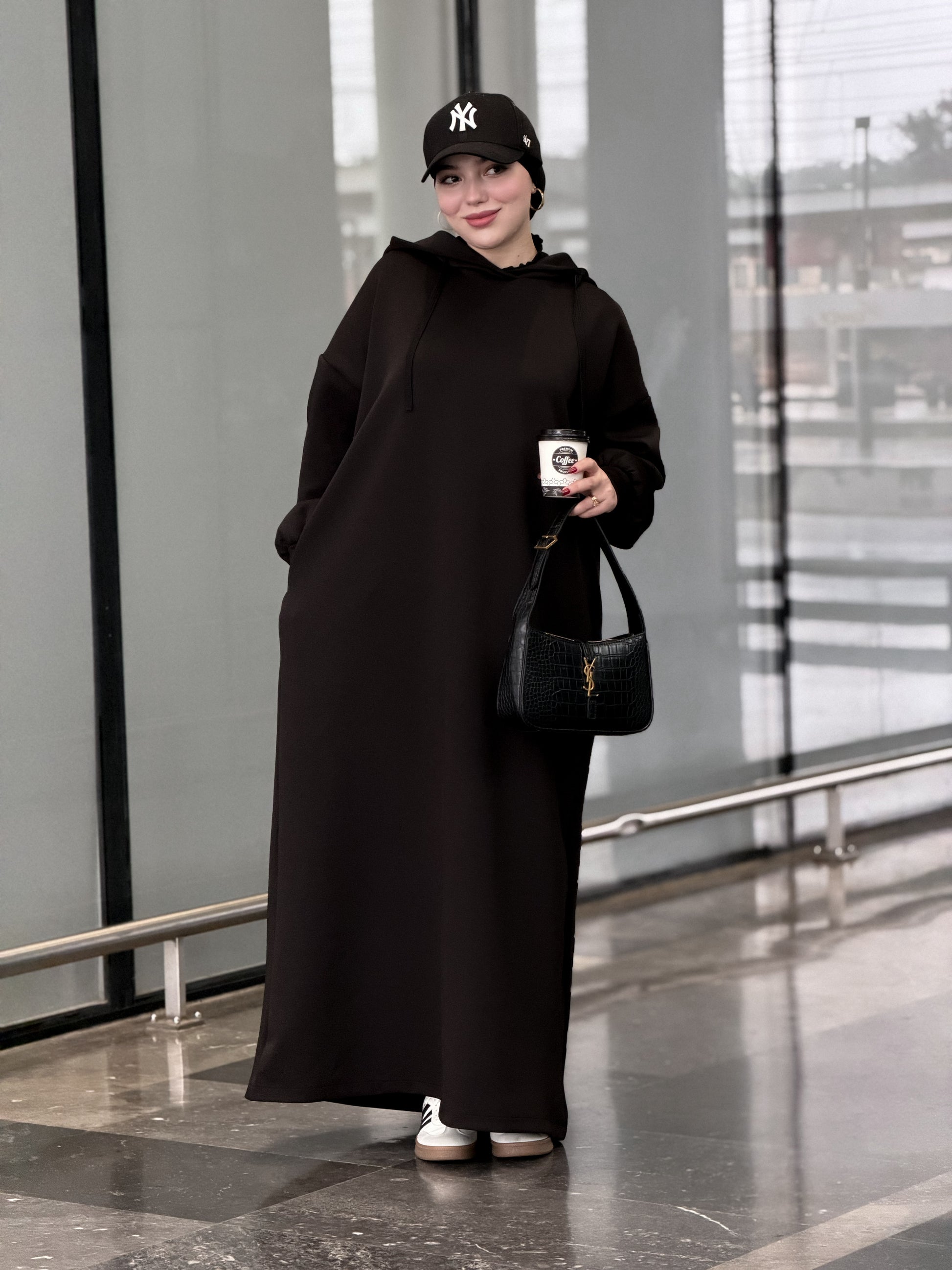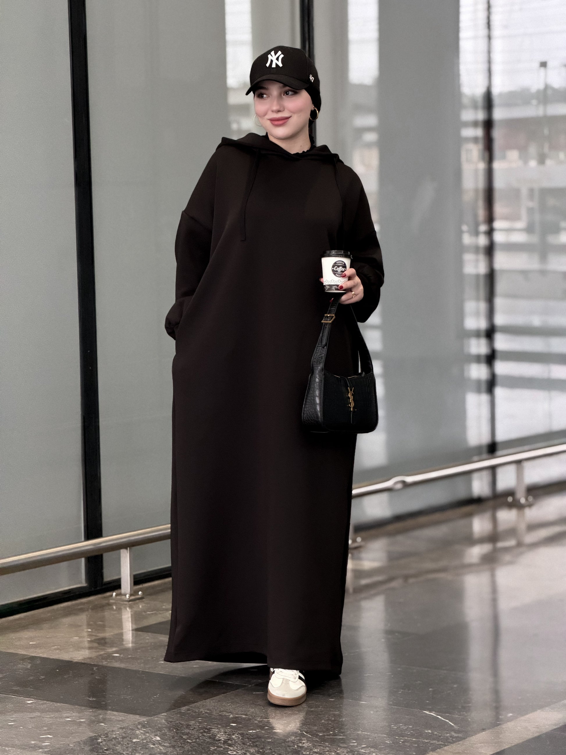 نقدم لكِ قطعة أساسية وعصرية: فستان الهودي الماكسي الكاجوال، المصمم بأسلوب يجمع بين الاحتشام، الراحة الفائقة، واللمسة الرياضية الأنيقة. فستان طويل، واسع، ومريح، مثالي لإيقاع حياتكِ السريع.