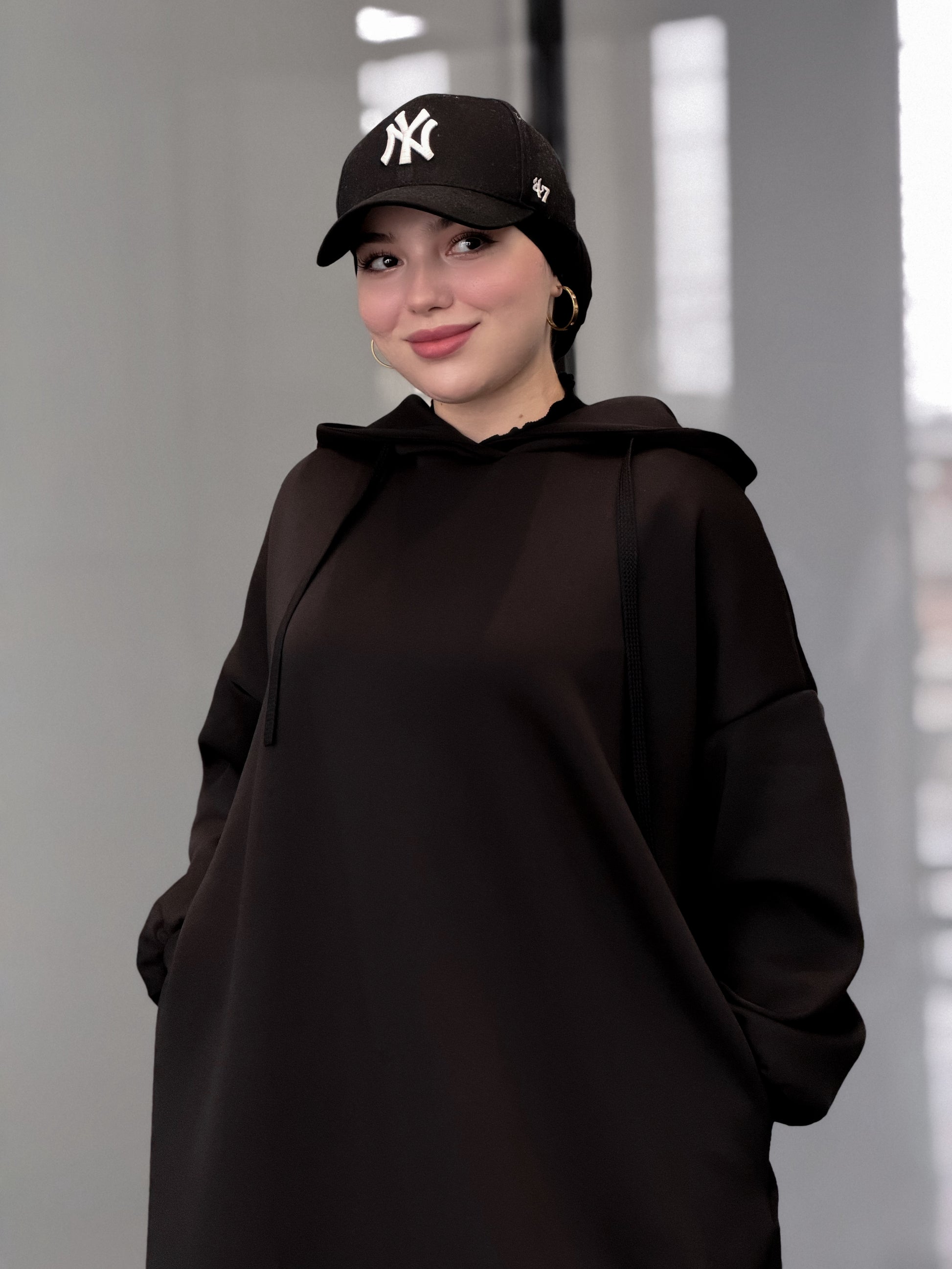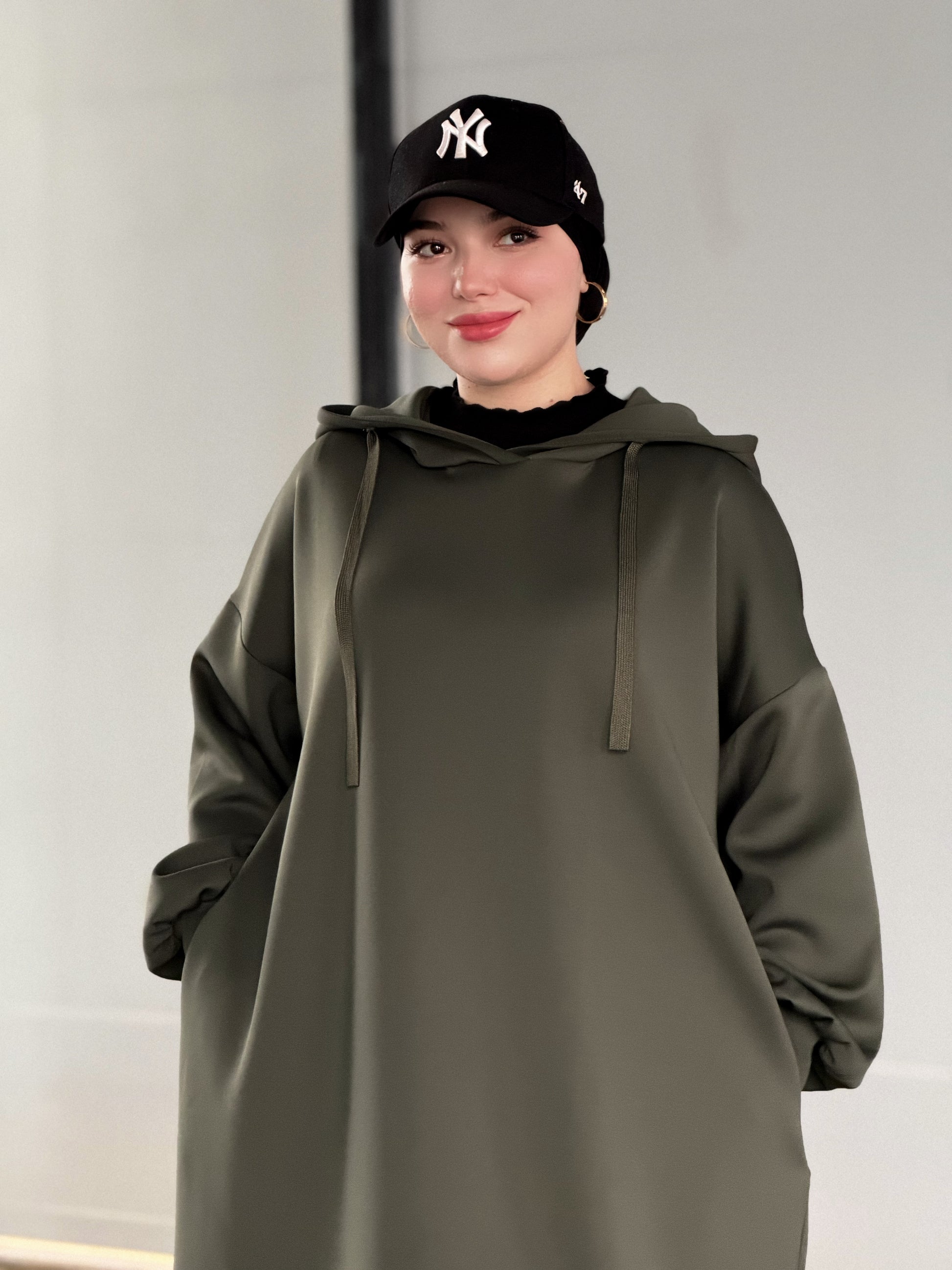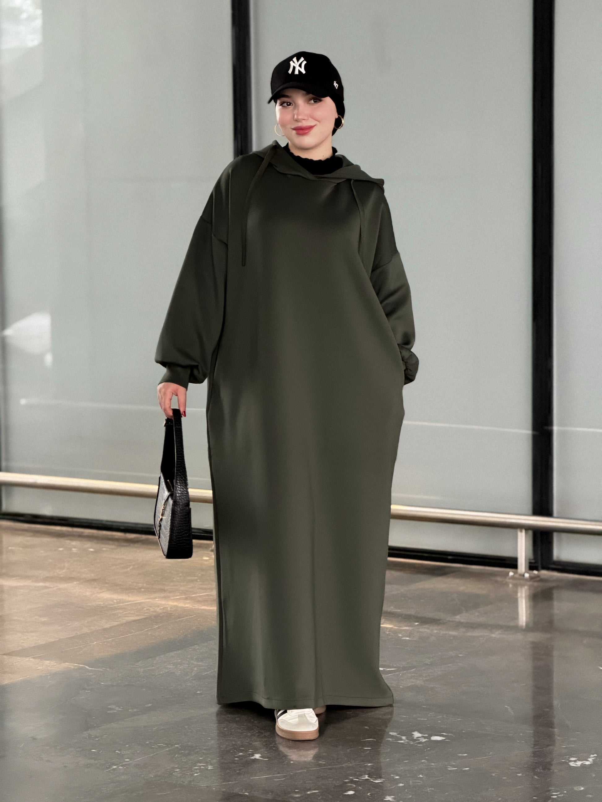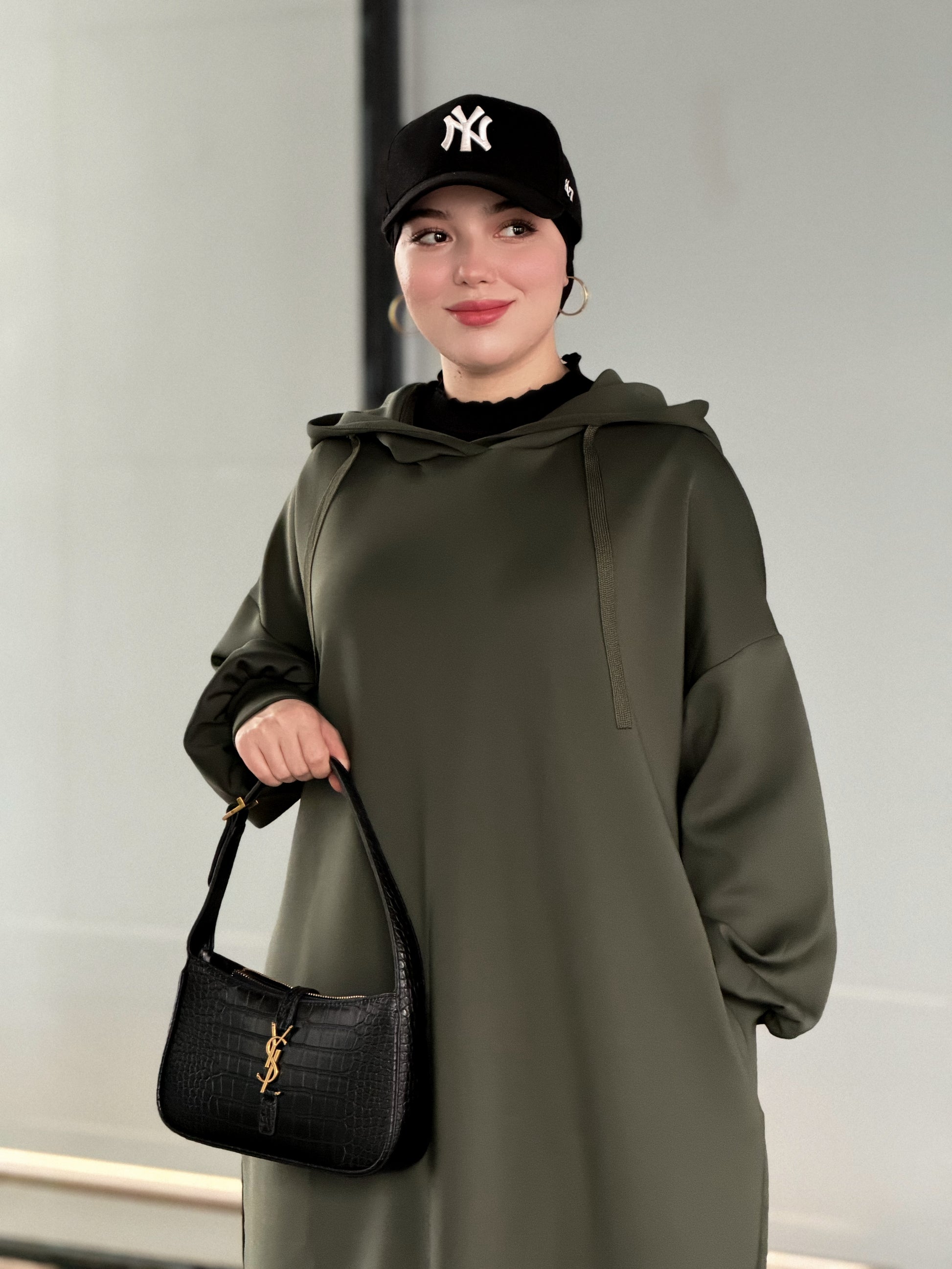 نقدم لكِ قطعة أساسية وعصرية: فستان الهودي الماكسي الكاجوال، المصمم بأسلوب يجمع بين الاحتشام، الراحة الفائقة، واللمسة الرياضية الأنيقة. فستان طويل، واسع، ومريح، مثالي لإيقاع حياتكِ السريع.